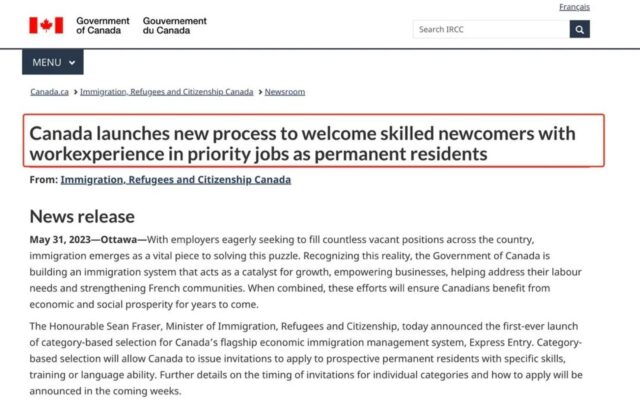 根据这项改革,移民局将采取定向邀请的方式,即基于特定职业类别向候选人发出邀请,而不再仅仅依据分数高低来进行邀请。